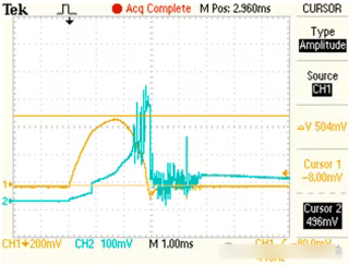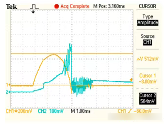 (დ) გაწყვეტის დრო: 3.0 ms, გაწყვეტის დენი: 2810 ა