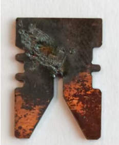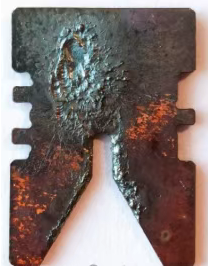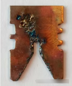 ტალღის ფორმა უფრო ინტენსიურია შეკვეცის შემდეგ აშკარა ზარით. რკალი გვიჩვენებს ძლიერ გაშავებას და დნობის დაგროვებას.