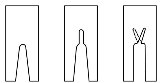 ● იძულებითი Z- ფორმის ბილიკი: რკალი იძულებულია შეცვალოს მიმაგრების წერტილები და მიმართულება შესასვლელთან, რაც უდრის შესვლამდე რამდენჯერმე დასაკეცს, რაც მნიშვნელოვნად ზრდის მის სიგრძეს.