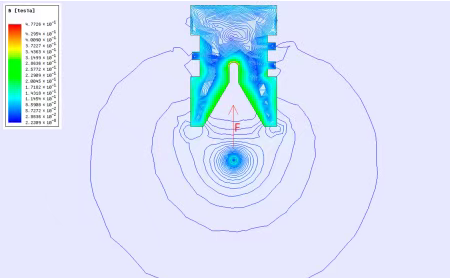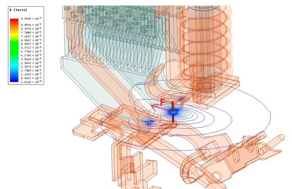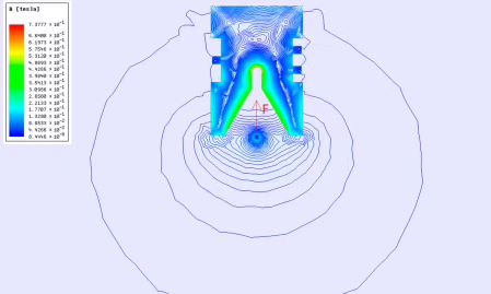 ● ლურჯი კოჭის მსგავსი მოსახვევები: მაგნიტური ველის ხაზები რკალის დენის გარშემო, რაც მიუთითებს იმაზე, რომ რკალის გარშემო მაგნიტური ველი არათანაბრად არის განაწილებული, მაგრამ მიკერძოებული გამტარის გეომეტრიით და ფერომაგნიტური კომპონენტებით.