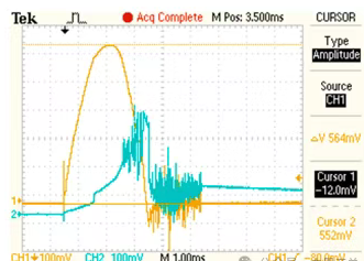 ● ნარინჯისფერი (CH1): აღდგენის ძაბვა/TRV ტალღის ფორმა